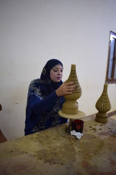 We are Magda Husien, Hanan Ahmed, Rasha Ahmed and Entsar Housin; we do pottery (for example vase, pottery for lamps).