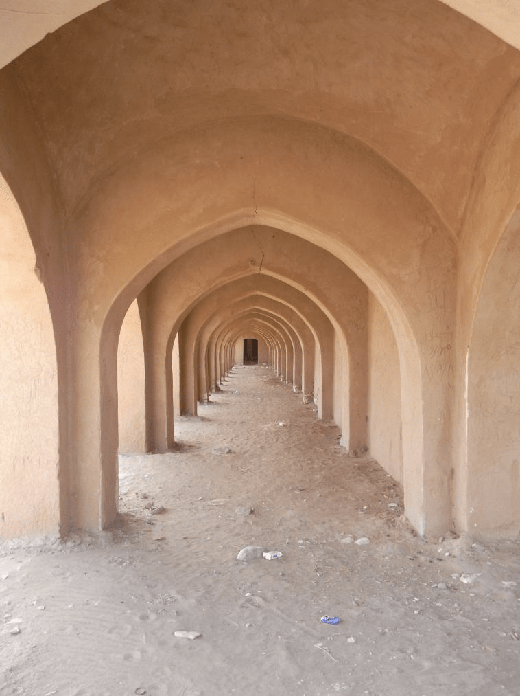 Hassan Fathy Villageis an abandoned village thatwas built in the 1960s to house a new agricultural community in the Kharga oasis. It was called New Baris and it was designed by the renowned Egyptian architect Hassan Fathy for the Egyptian Administration of Desert Development.The architect used the Medieval villages in Kharga as an inspiration to solve issues with the high temperatures, sand and wind, that can make the oasis near inhabitable. He solved it by building storages underground and creating architecture that allowed for maximum airflow through the rooms. He also designed the village so that the houses would provide shade on the streets during the hottest hours of the day, similar to the way the Medieval villages were costructed. The project started in 1967 and it was interrupted that same year because of the Six-Day War. After that itwas abandoned. A few families lived there for a single year, maybe banished to the oasis for smuggling activities near Suez. Today among the remaining buildings are the market, two villas, a workshop and a bus terminal abutting the main road(CISS Inventory 2010; Vivian 1990).