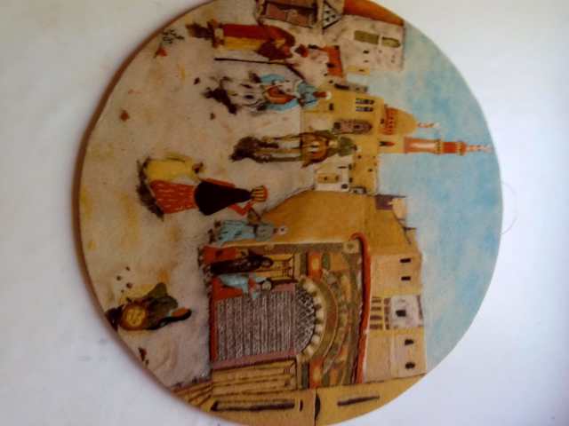 Handmade wooden painting drawn with natural colored sand, symbolizing the Islamic heritage