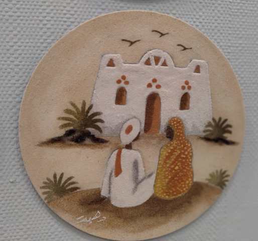 Handmade painting drawn with natural colored sand, symbolizing the Nubian life.