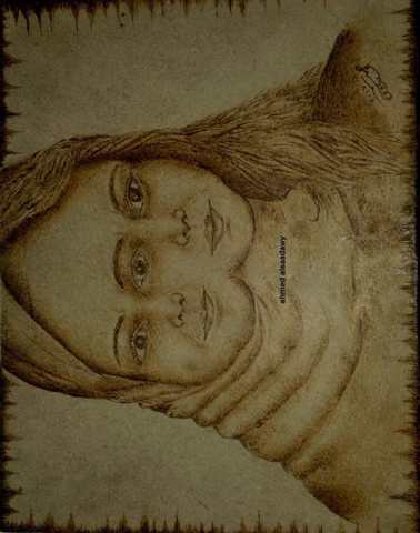 Wooden drawing using the fire feather technique (burning), symbolizing Schizophrenia