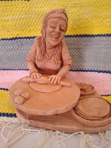 Handmade statue symbolizing woman making bread