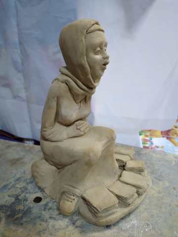 Handmade statue symbolizing books and newspaper seller ( it is at raw stage of preparation )