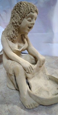 Handmade statue symbolizing woman washing clothes ( it is at raw stage of preparation )