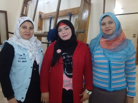 We are Heba Salah, Eman Saad and Ola Ragab; we produce carpets and klims. We use any waste of clothes and other raw materials for the creation of our products. At the current time we are also making courses to produce carpets with different techniques.