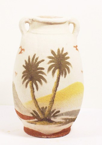 Handmade clay pottery decorated with natural sand