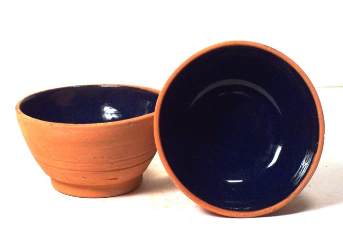 Handmade blue-coloured clay pottery