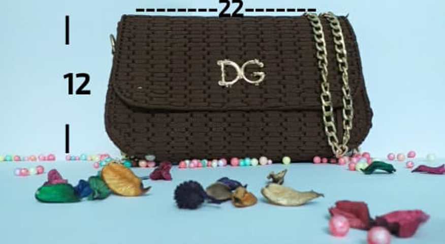 Handmade bag made of plastic net, chain string, metal chain hand and metal accessory