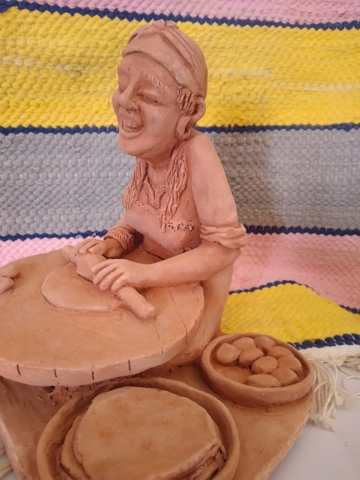 Handmade statue symbolizing woman making bread